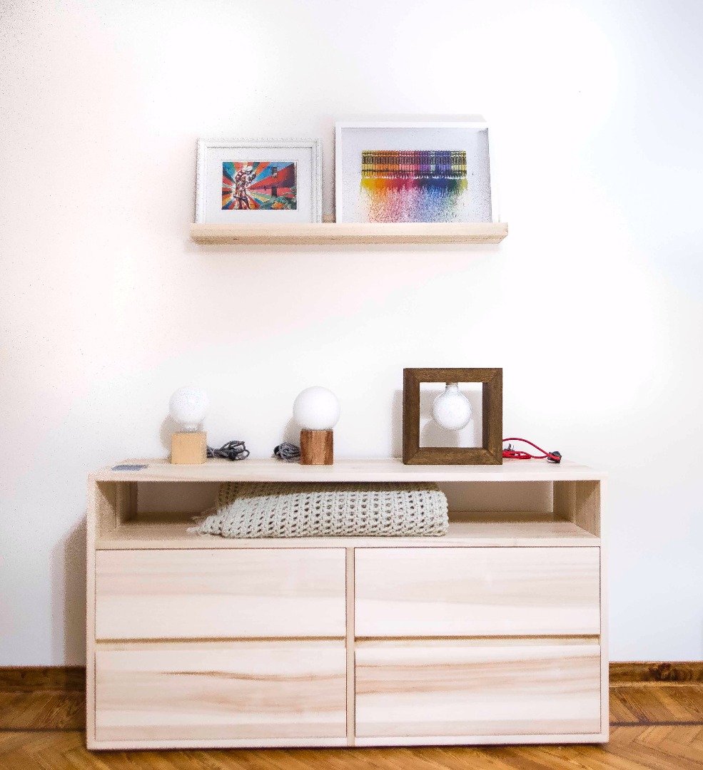 Cómoda de madera maciza o laqueada con 6 cajones con correderas telescópicas. Se realiza a medida y en distintas maderas y terminaciones.
