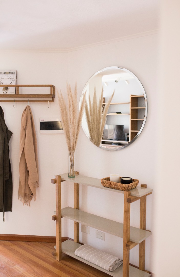 Espejo circular o rectangular con cantos biselados. Se realiza a medida.