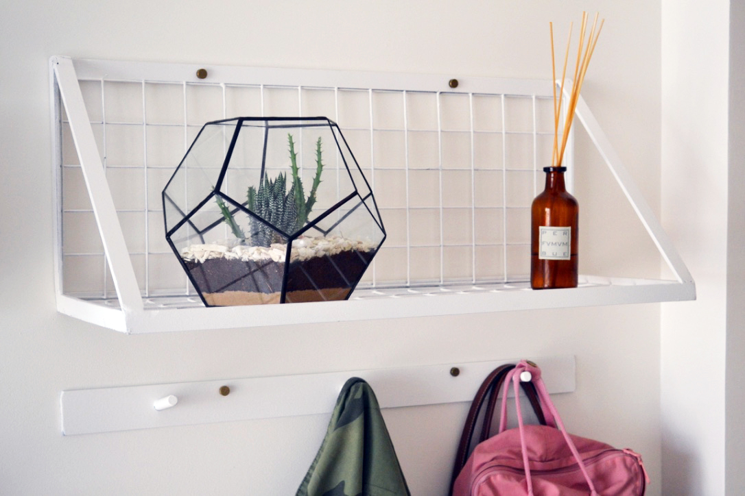 Estante de malla de hierro. Medidas: 0,27 x 0,71/0,52 x 0,27 mts.
