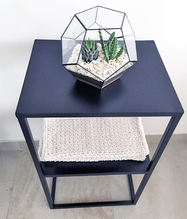 Mesa con estructura y estantes de hierro. Medidas: 0,85 x 0,40 x 0,50 mts. Se puede realizar a medida y en distintos colores.