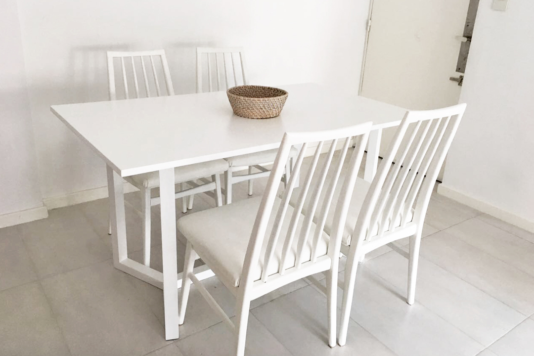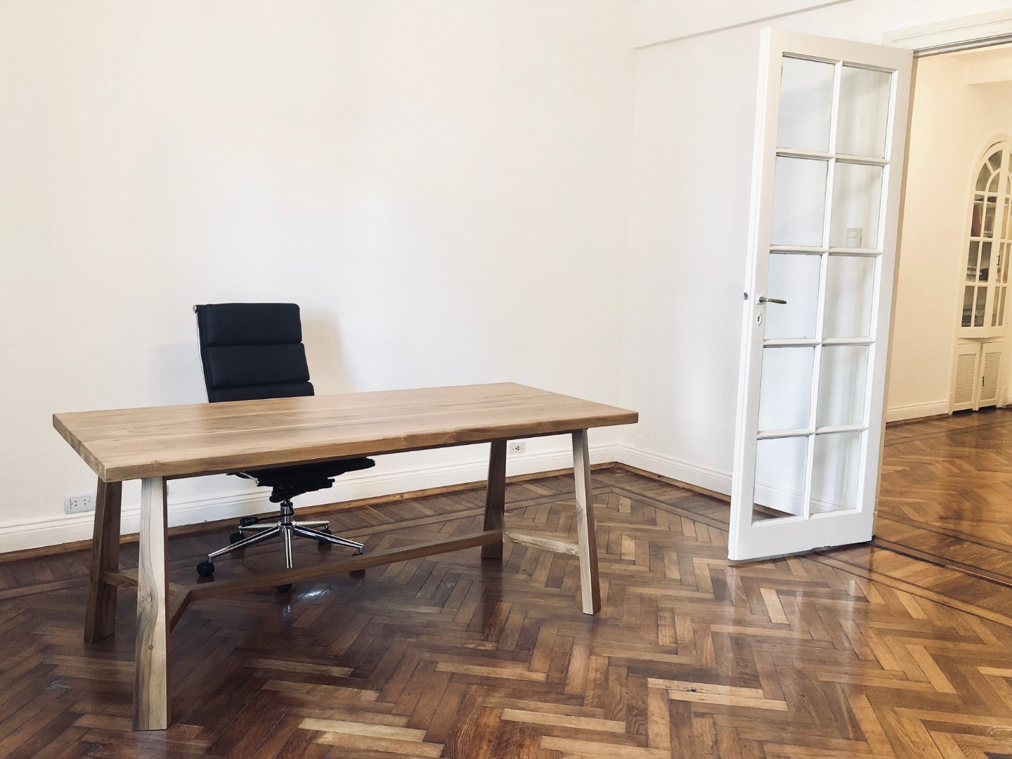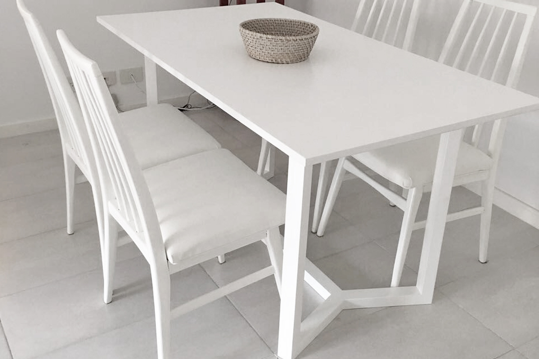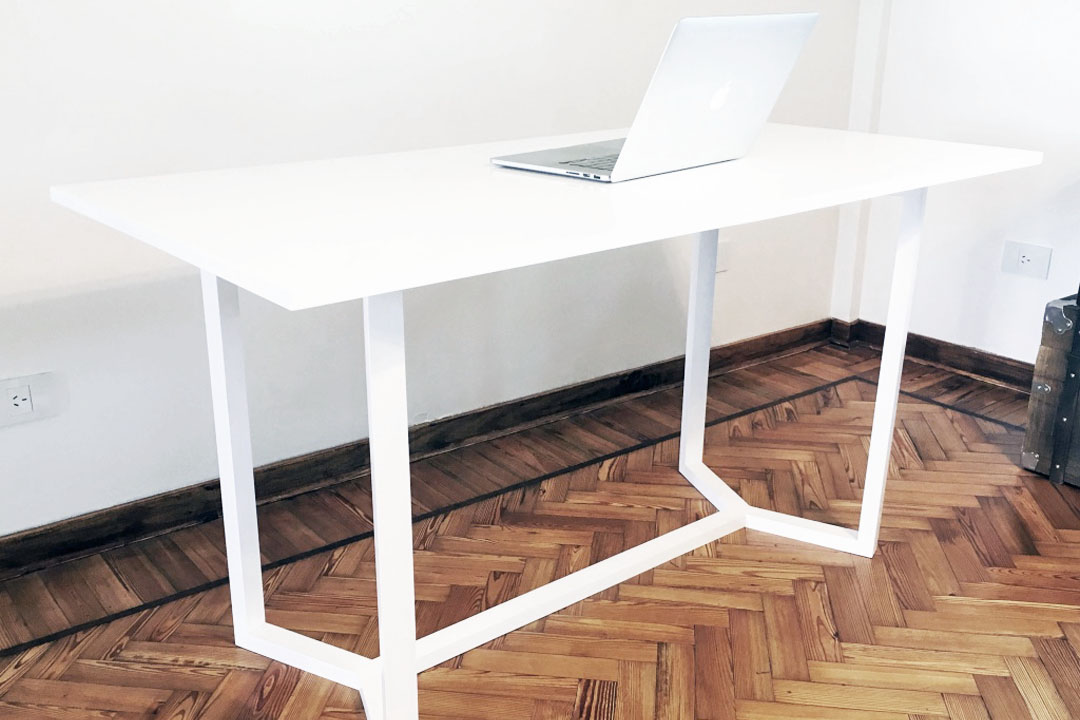Mesa rectangular con estructura y tapa laqueadas o de madera. Se realiza a medida y en distintas maderas y terminaciones.
