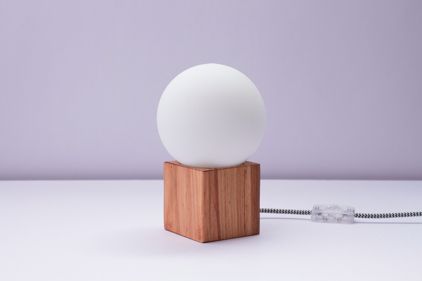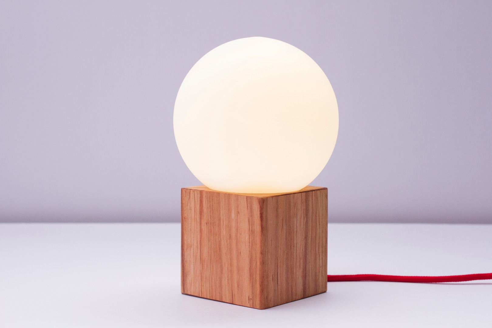 Lámpara de madera Cañafistola Medidas de la base: Ancho: 9,5 cms Profundidad: 9,5 cms Alto: 9,5 cms Diámetro de la tulipa: 14 cms Color del cable: Rojo o Blanco y Negro Incluye: Bombita de bajo consumo.