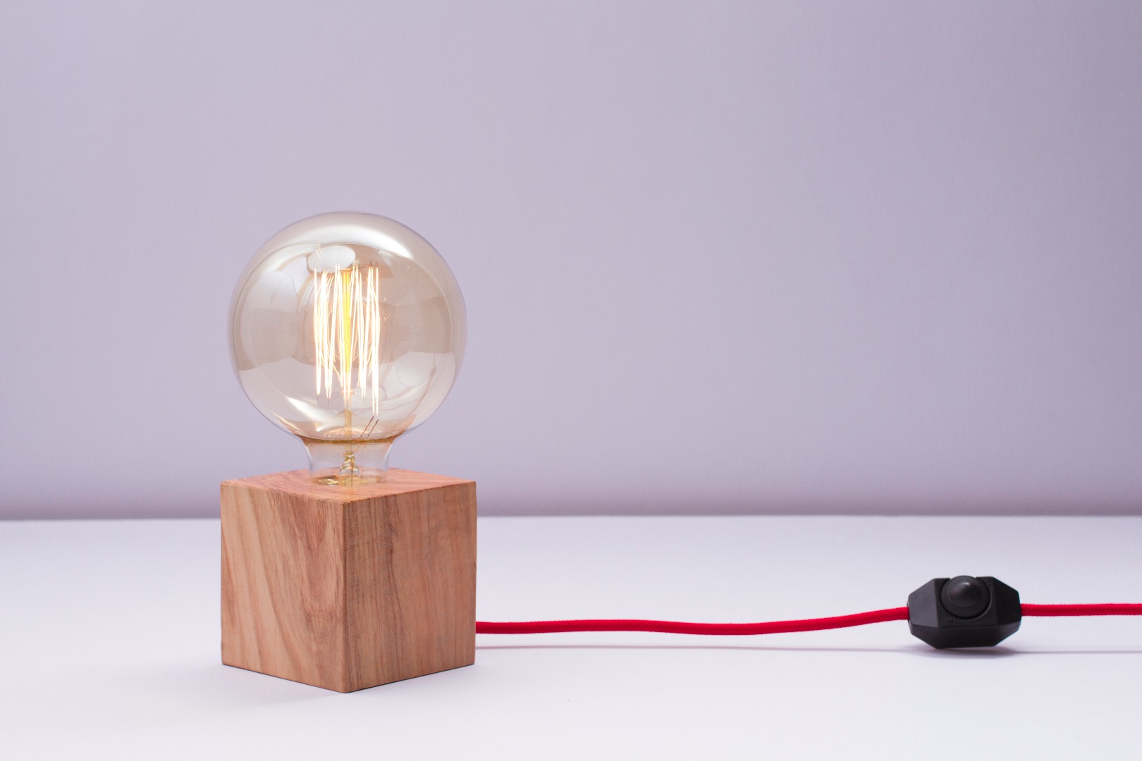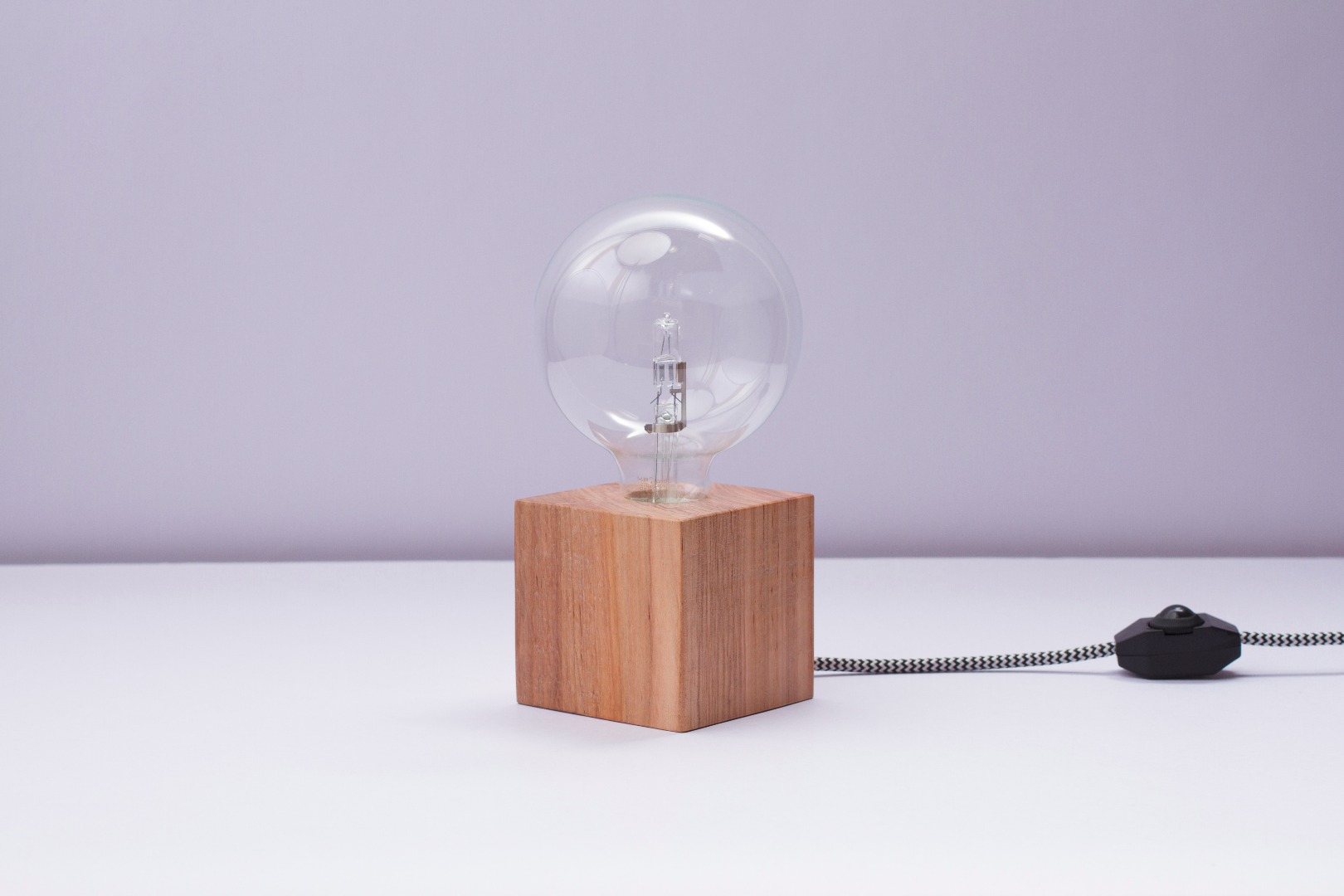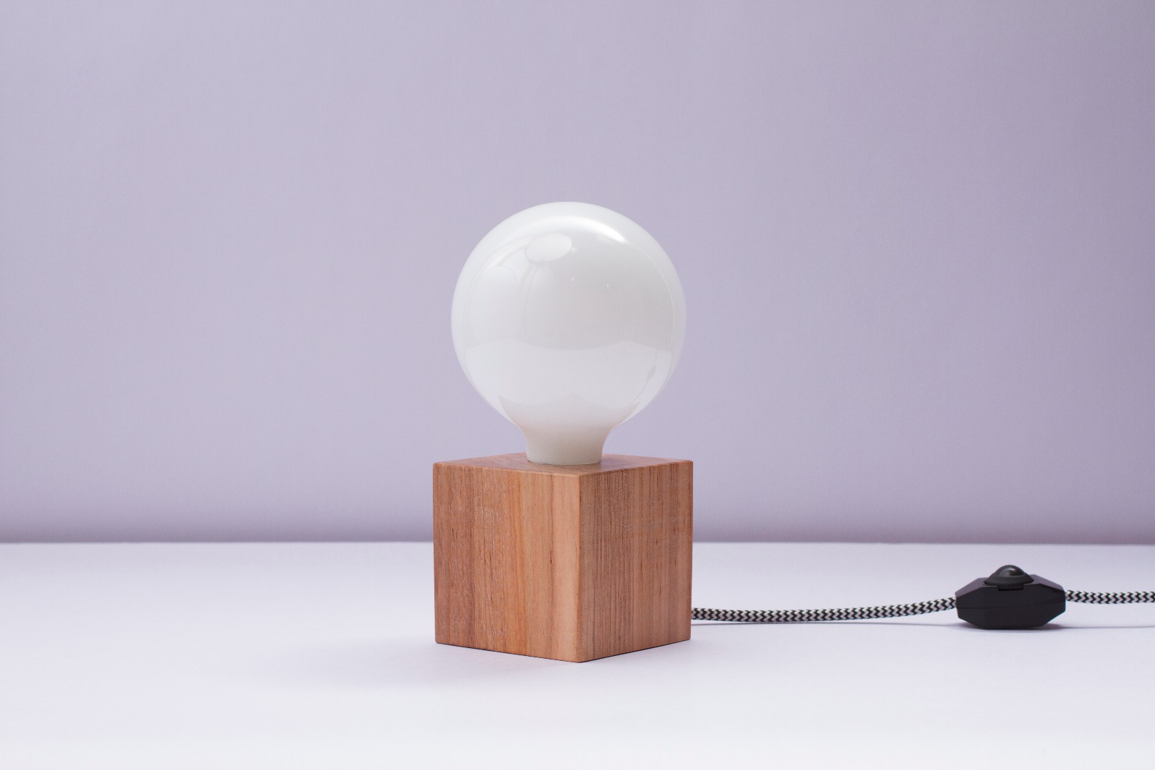 Lámpara de madera Pinotea (edición limitada) Medidas de la base: Ancho: 9,5 cms Profundidad: 9,5 cms Alto: 9,5 cms Diámetro de la bombita blanca o transparente: 12,5 cms (70w) Diámetro bombita de filamento: 12,5 cms (20w) Color del cable: Rojo o Blanco y Negro Incluye: Bombita y Dimmer para regular la intensidad.